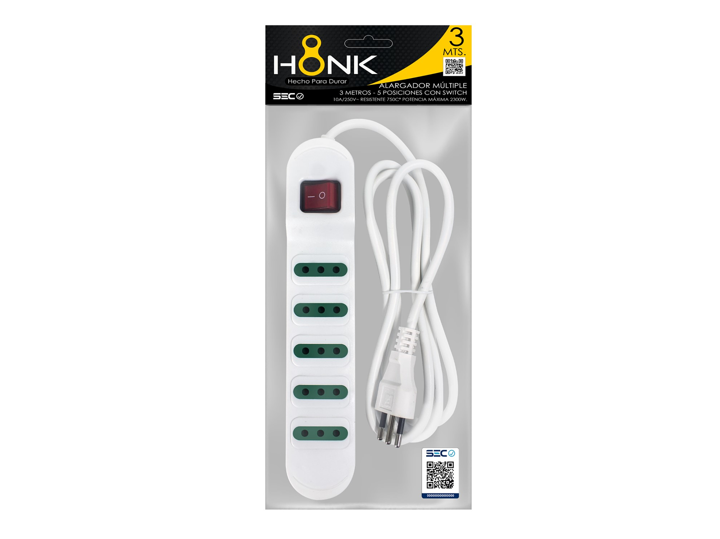 Alargador Electrico Honk 3 Mts 5Pos Switch