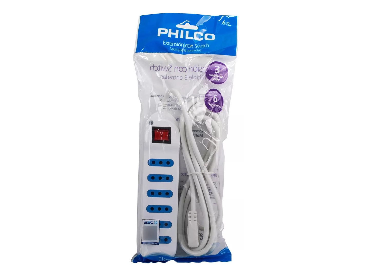 Alargador Eléctrico Philco XT30 3 Mts 6 Pos Blanco
