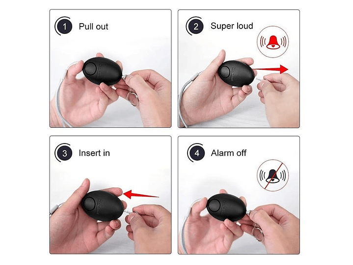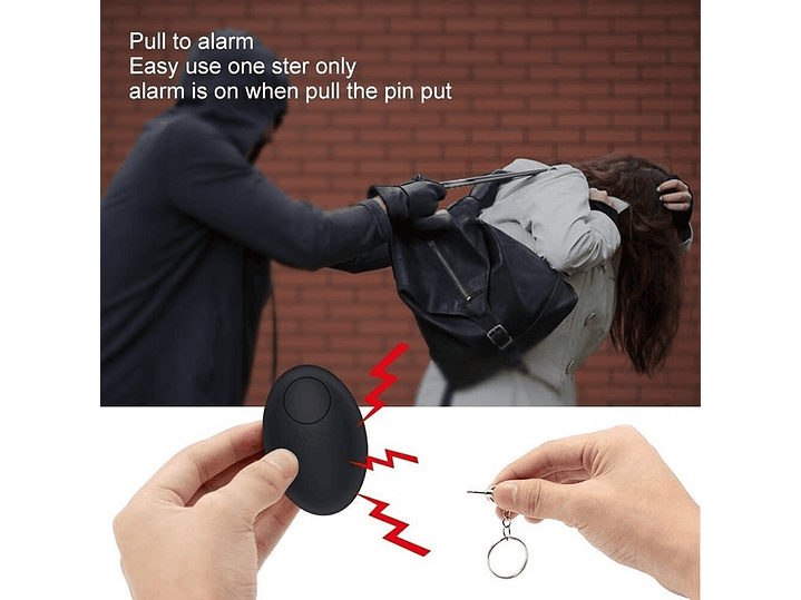 Alarma acústica de defensa contra agresores y contra perros agresivos, espantando a estos últimos con su sonido. Es ideal para adultos mayores con problemas de salud que necesiten asistencia. Además, es capaz de advertir sobre el peligro de agresores que puedan estar alrededor.