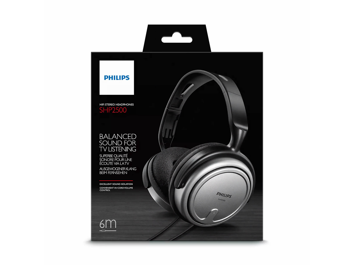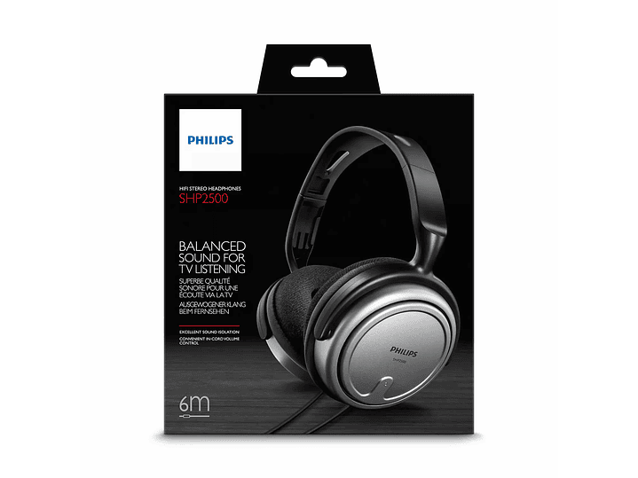 Audífonos de tamaño completo marca Philips Modelo SHP2500/10 al por mayor con cable de 6 metros para disfrutar del equipo HiFi y de la TV con un reflector acústico que ofrece un mayor rendimiento de graves.