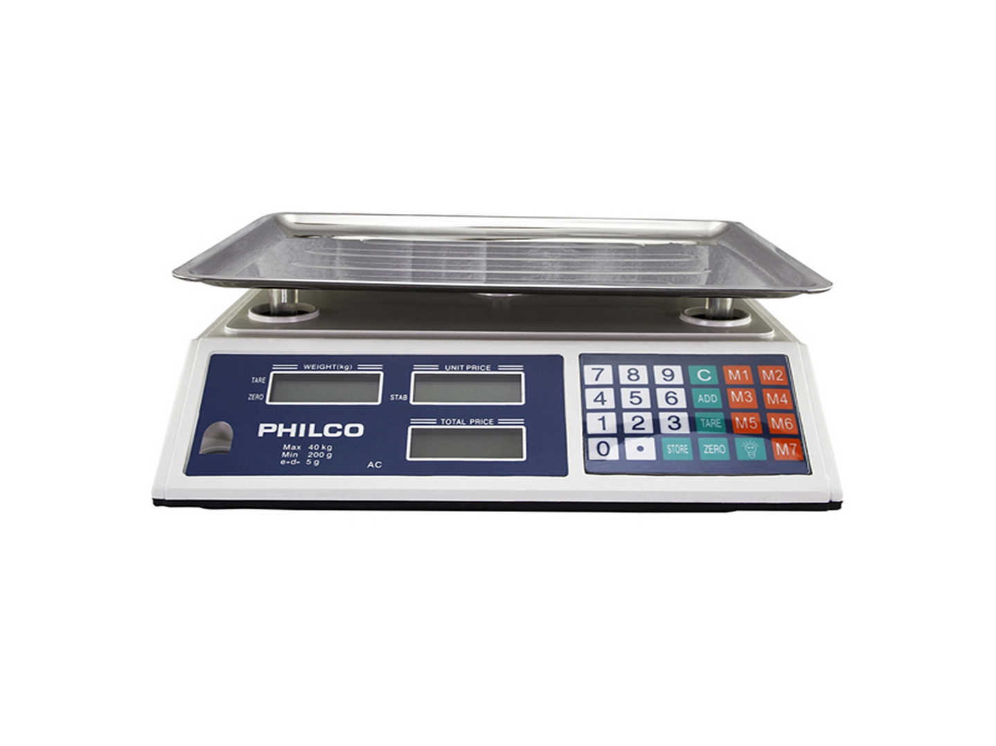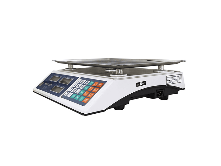 Balanza digital para negocio con bandeja de acero inoxidable hasta 40 kilos pantalla lcd batería recargable de 4 Ah duración de uso continuo hasta 20 horas aprox.