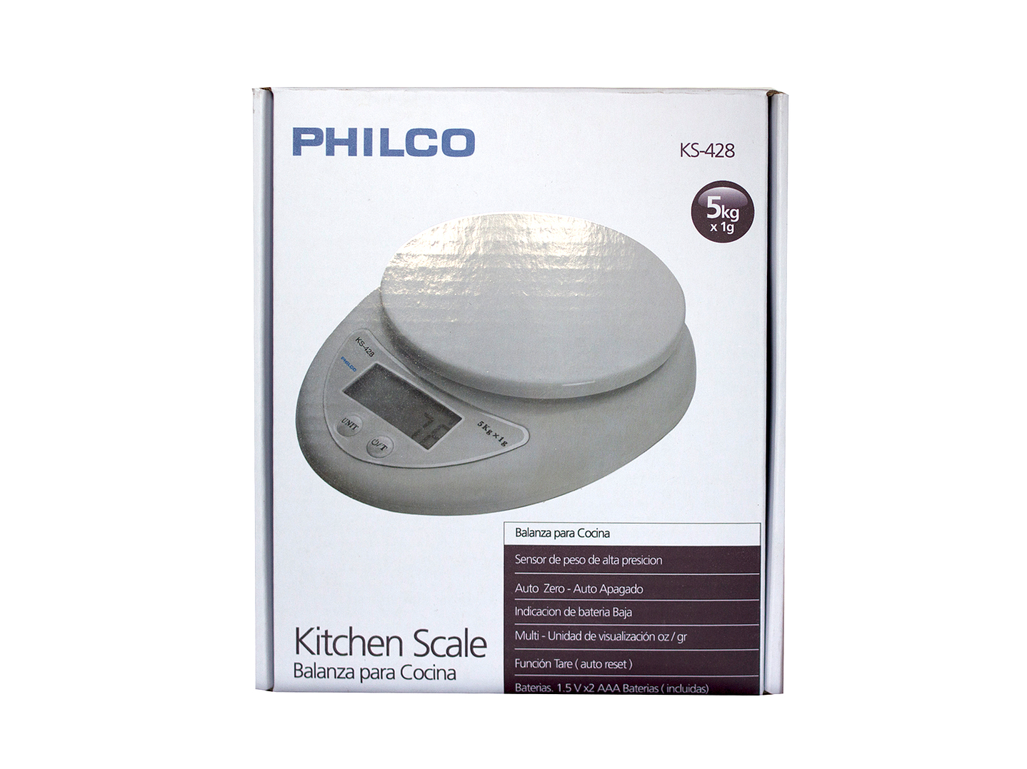 Con la Balanza Philco KS-428 al por mayor puede pesar en gramos, kilos, libras y onzas, facilitando sus labores en casa. Está equipada con sistema de alta precisión, es liviana y utiliza pilas, lo que facilita aún más su uso.