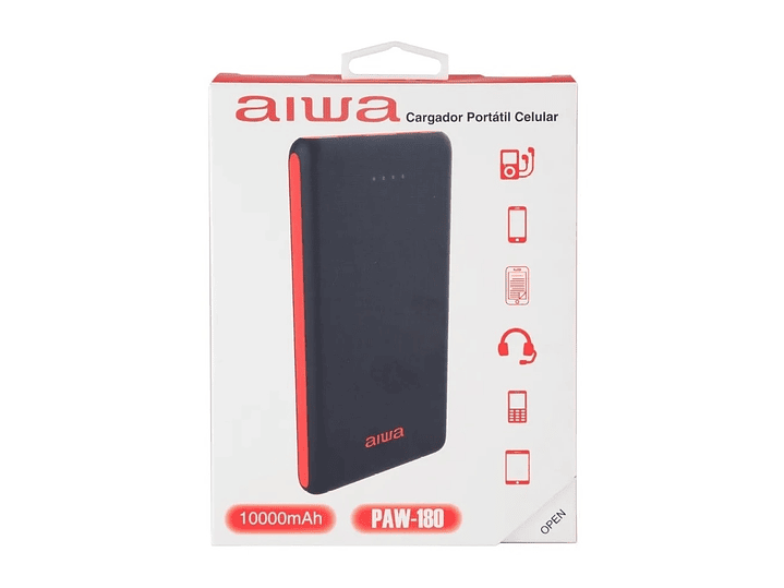 Aiwa Power Bank PAW-180 de 10.000 mAh Recargable es su solución pequeña, rápida y portátil para liberarse del enchufe de pared y mantener sus dispositivos móviles funcionando en todo momento, es compatible con ipod, celulares android, iPhone, audífonos, tablets. Podrás cargar cualquiera de tus accesorios en cualquier hora del día.