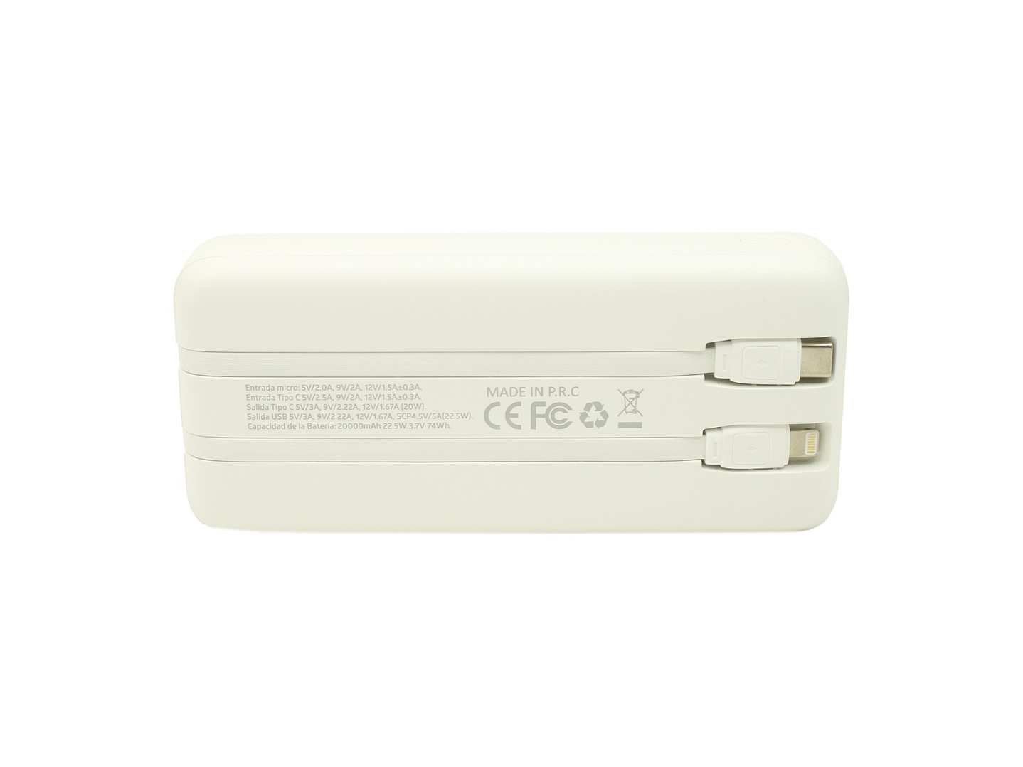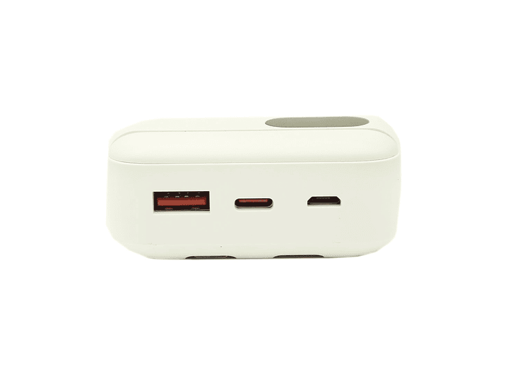 Tecnolab Batería Portátil Powerbank TL547W al Por Mayor de color blanco de 20.000 mAh Recargable es su solución pequeña, rápida y portátil para liberarse del enchufe de pared y mantener sus dispositivos móviles funcionando en todo momento, con 2 cables incorporados tipo C y Lightning.