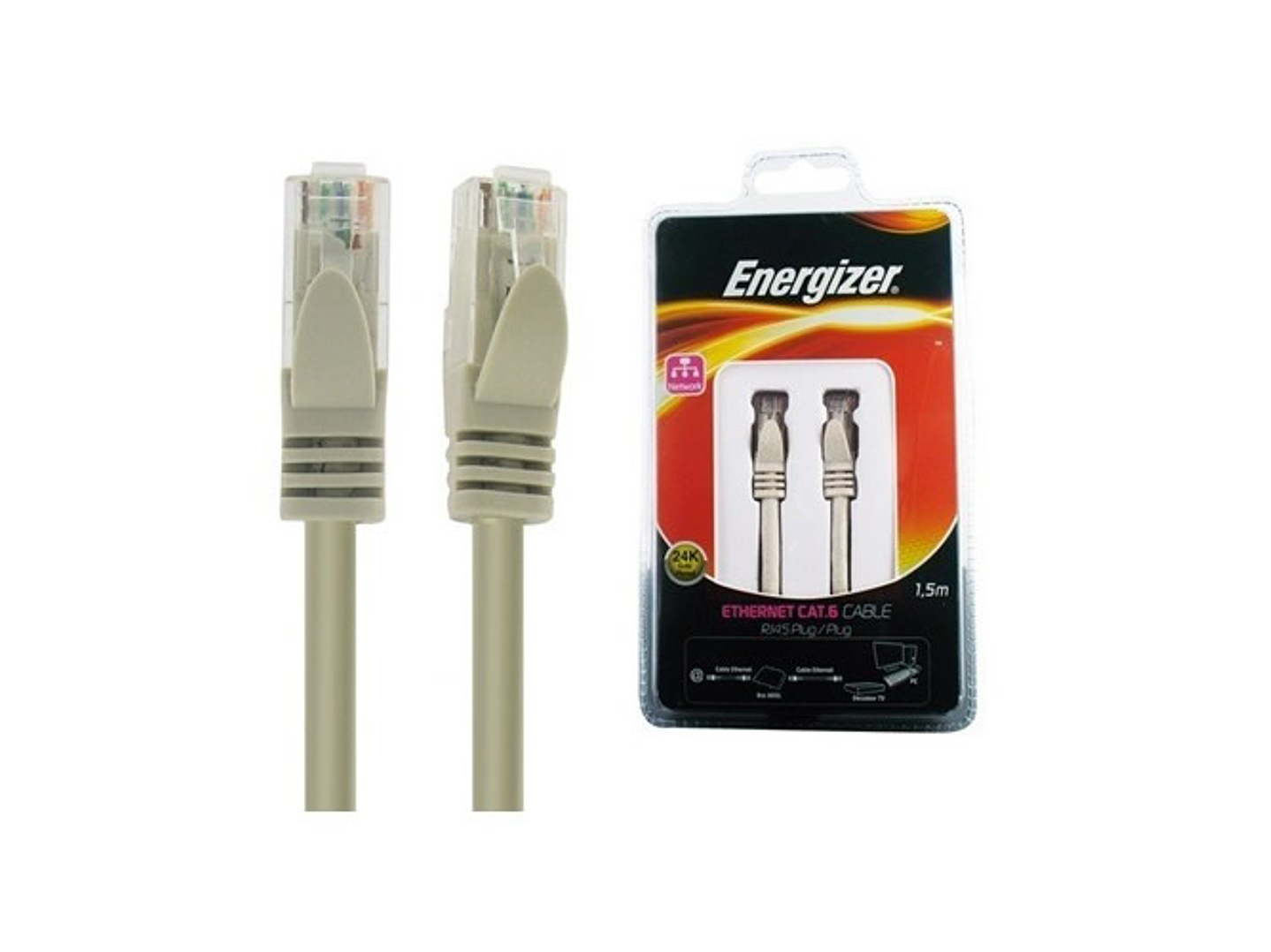 Cable Ethernet Energizer 1,5metros RJ45, categoría 6 El cable Ethernet RJ45 de Energizer Al Por Mayor es un cable LAN de categoría 6 La categoría 6 nos ofrece una transmisión de datos de 250mbps (la categoría 5a ofrece 100mbps). Conexión a internet desde el portátil, caja ADSL, STB, dispositivos Power Over Ethernet (POE), PLC Homeplugs... Cable Ethernet con conectores RJ45 en ambos lados.