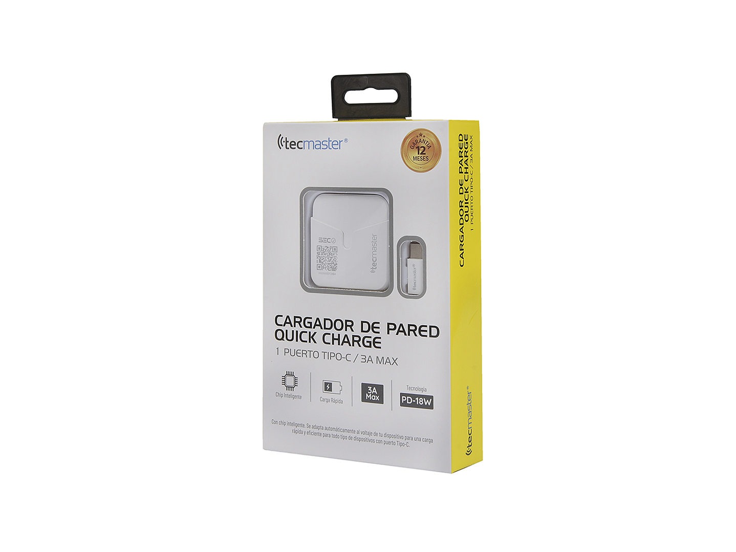 Cargador Pared 1 Usb Tipo C 3A Tecmaster Blanco