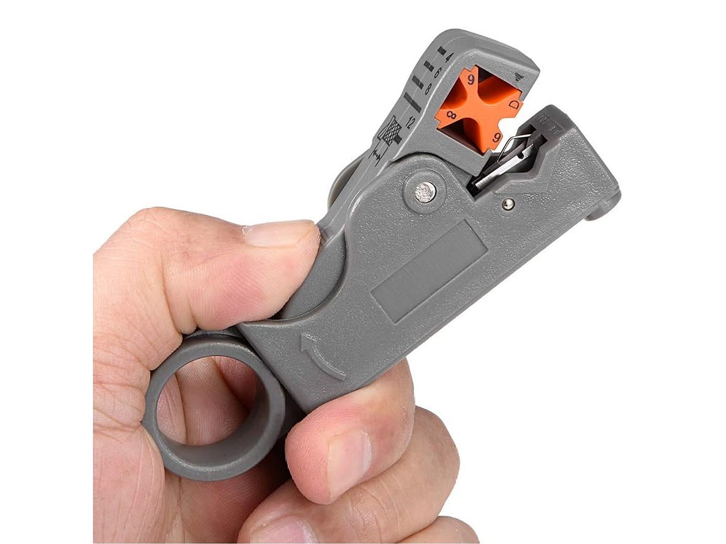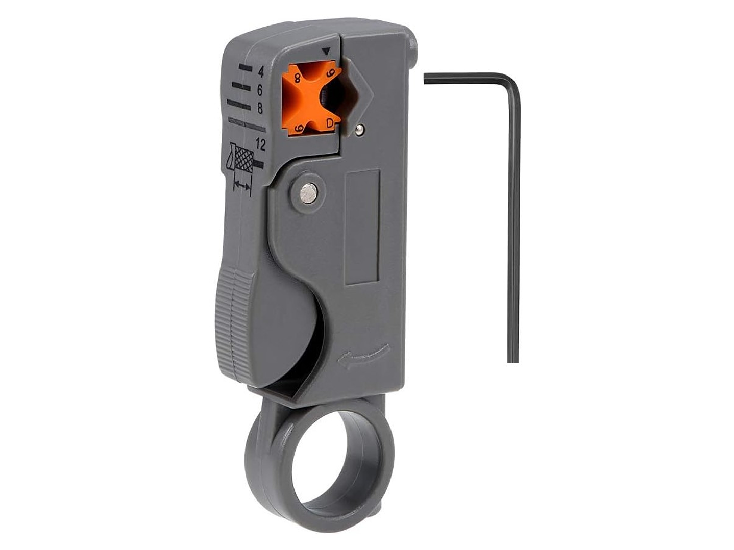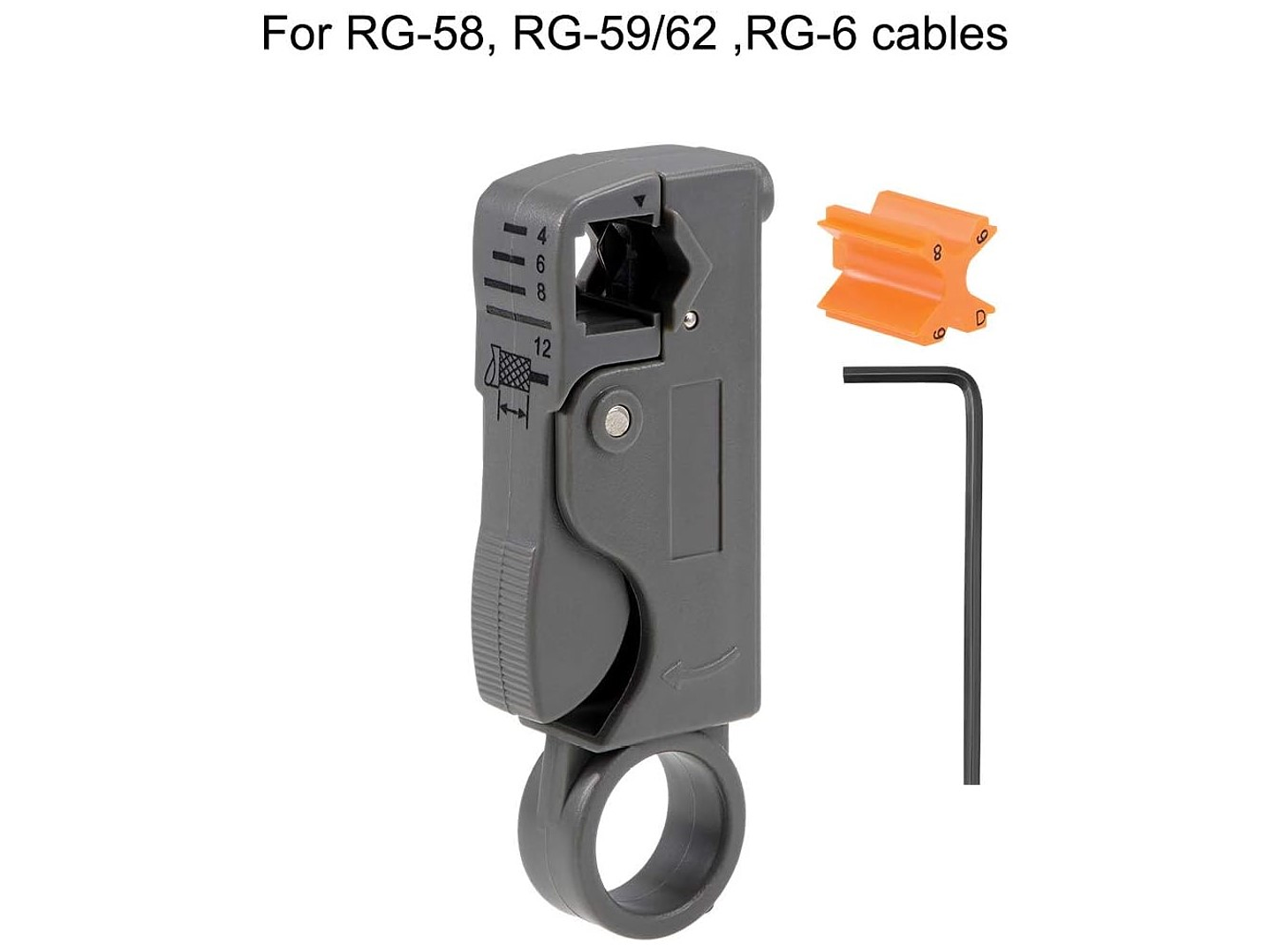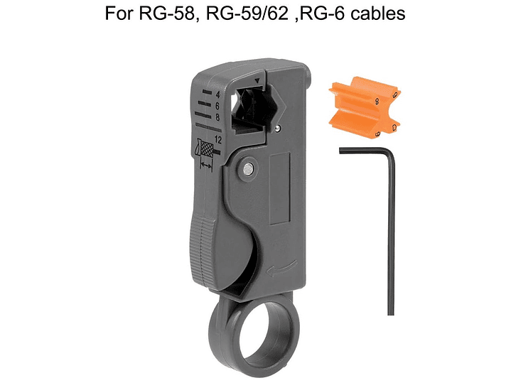 Corta cables coaxiales, tales como cables RG-58/59/62/3C/4C; Cuchillas dobles totalmente ajustables y reemplazables Rayas 4, 6, 8 y 12 mm de longitud del cable.