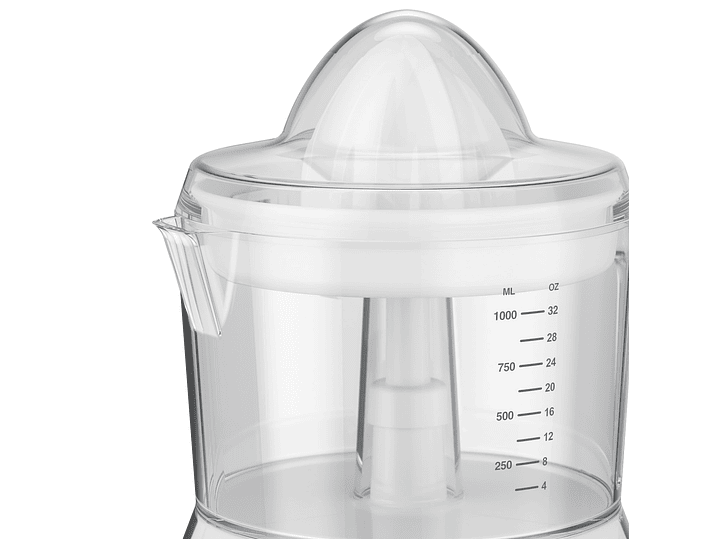 Sus 30 watts de potencia y su sistema eléctrico de girado automático reversible te ayudan a obtener hasta la última gota de jugo de forma ágil y fácil. Además, con la función de control de pulpa ajustable obtendrás mayor efectividad ya que el sistema de exprimido se acciona por la presión ejercida de la fruta sobre el cono exprimidor, lo cual hace muy práctico y seguro su uso. Cuenta con una Jarra de 1 Litro para preparar y servir tu jugo.