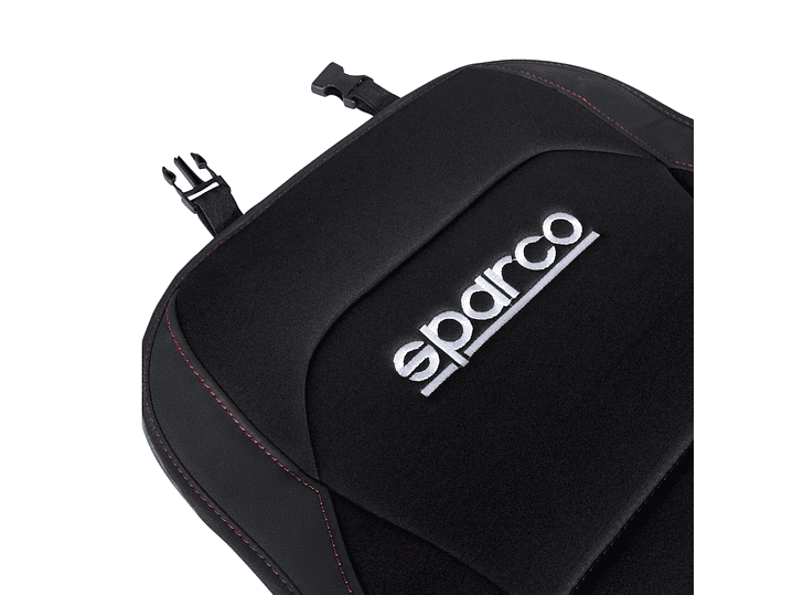 Funda cubre asiento Backrest universal Negro con costuras rojas Sparco, diseño de estilo elegante Brinda apoyo y comodidad extra, fabrica en Poliéster, Brinda comodidad extra acolchada Tamaño universal para todos los autos Duradero y fácil de limpiar.