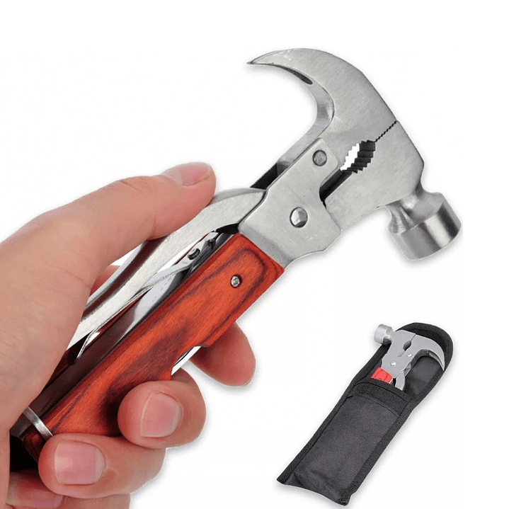 Este increíble martillo de garra es mucho más que un simple martillo. Con herramientas como alicates, tijeras de alambre, destornillador, sierra para madera, cuchillo, llave hexagonal y ¡muchas más! es tu compañero perfecto para la reparación del hogar, ciclismo, camping, escalada, pesca y hasta apicultura.