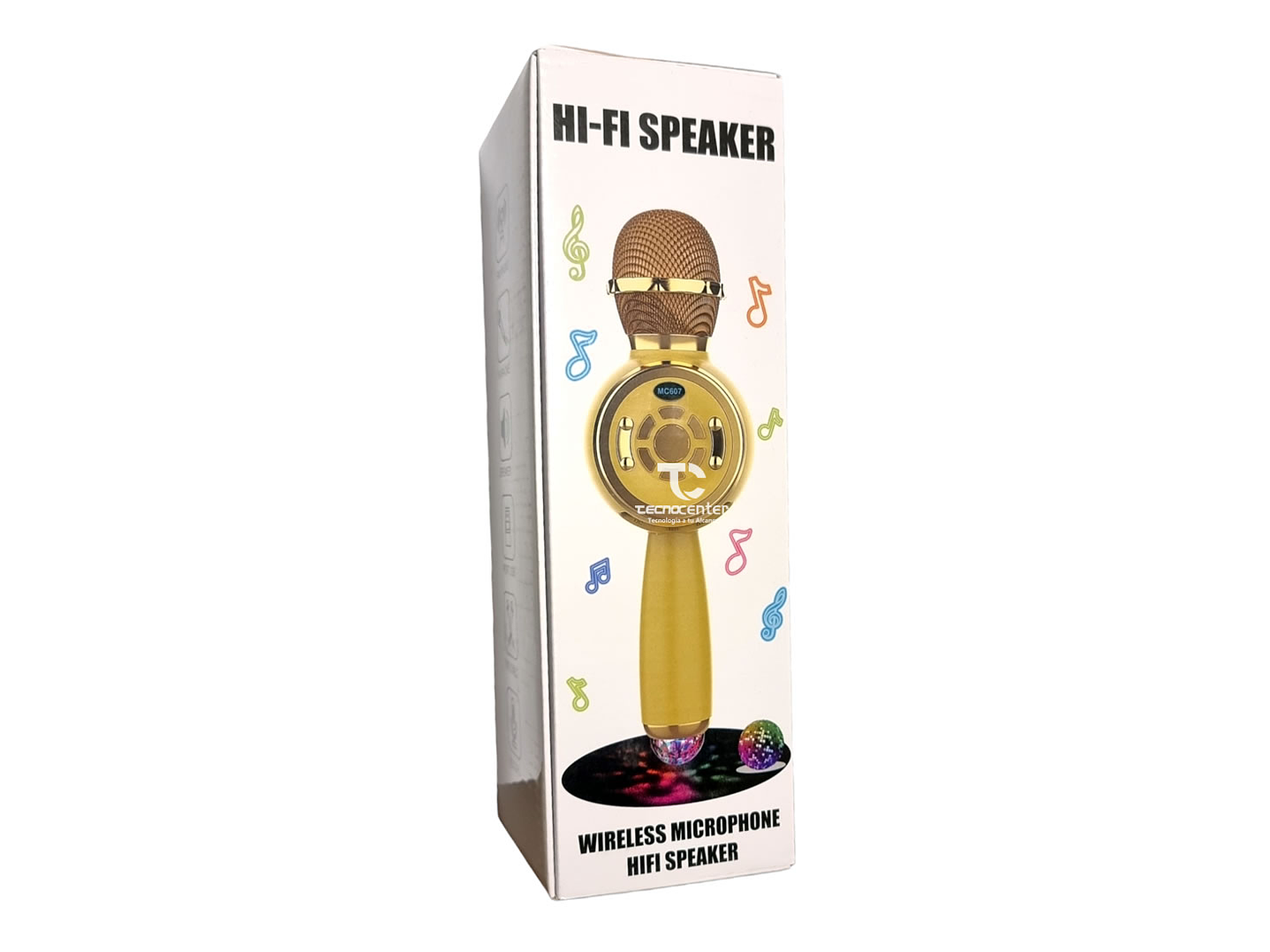 Microfono Karaoke TWS BT con luz Disco Dorado