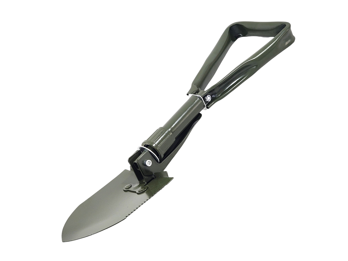 Multifuncional 3 en 1: Combina una pala, pico y sierra en una sola herramienta, ideal para cavar, cortar o despejar el camino.