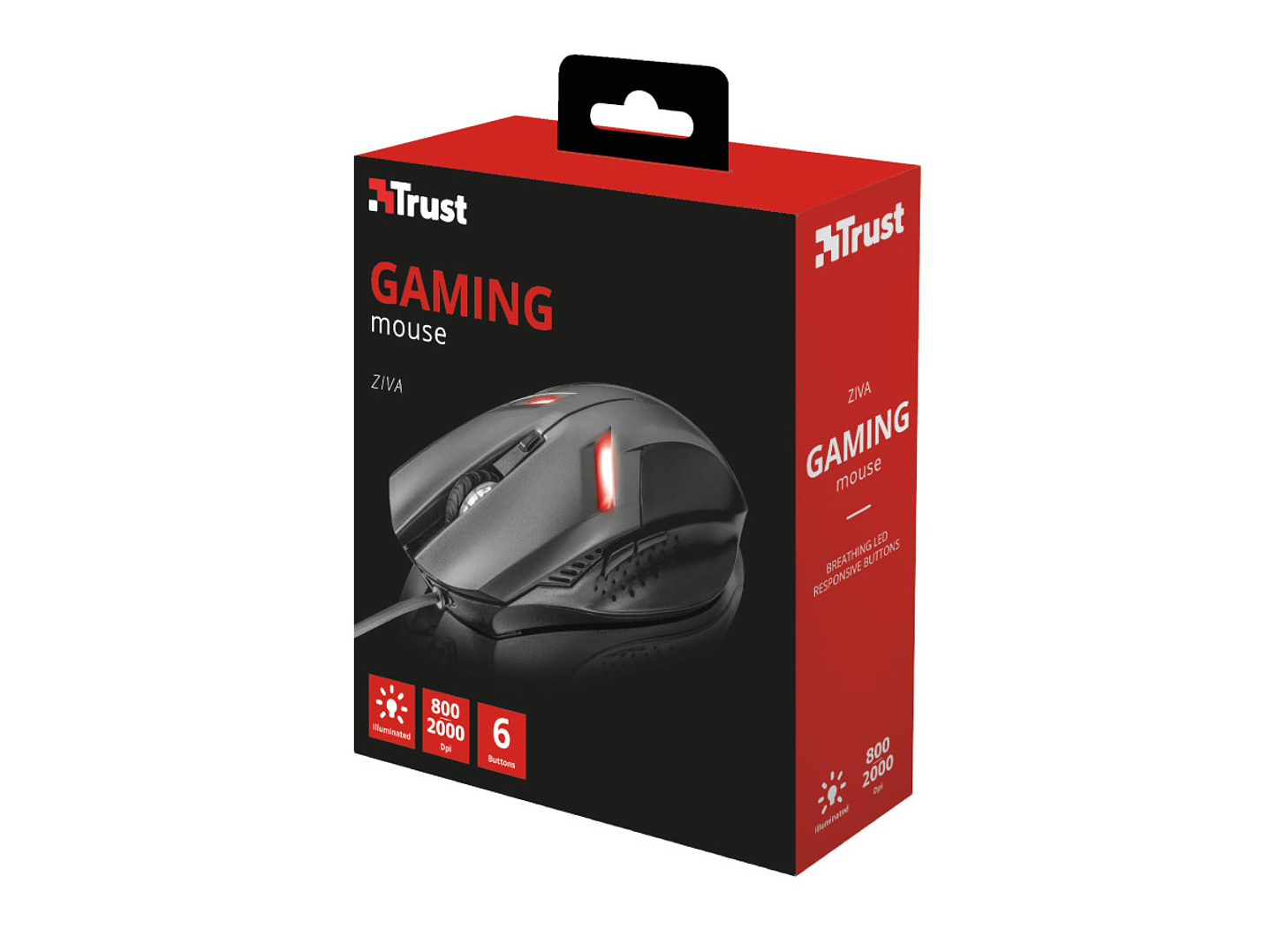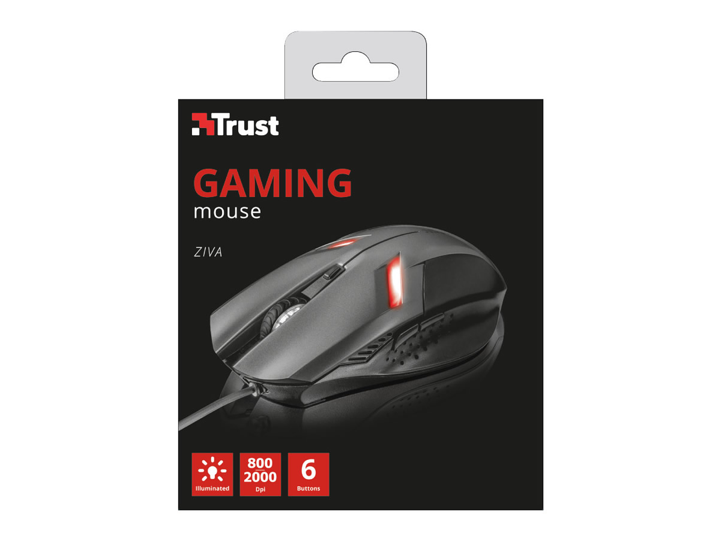 Mouse Gamer Trust Ziva 2000dpi Iluminado