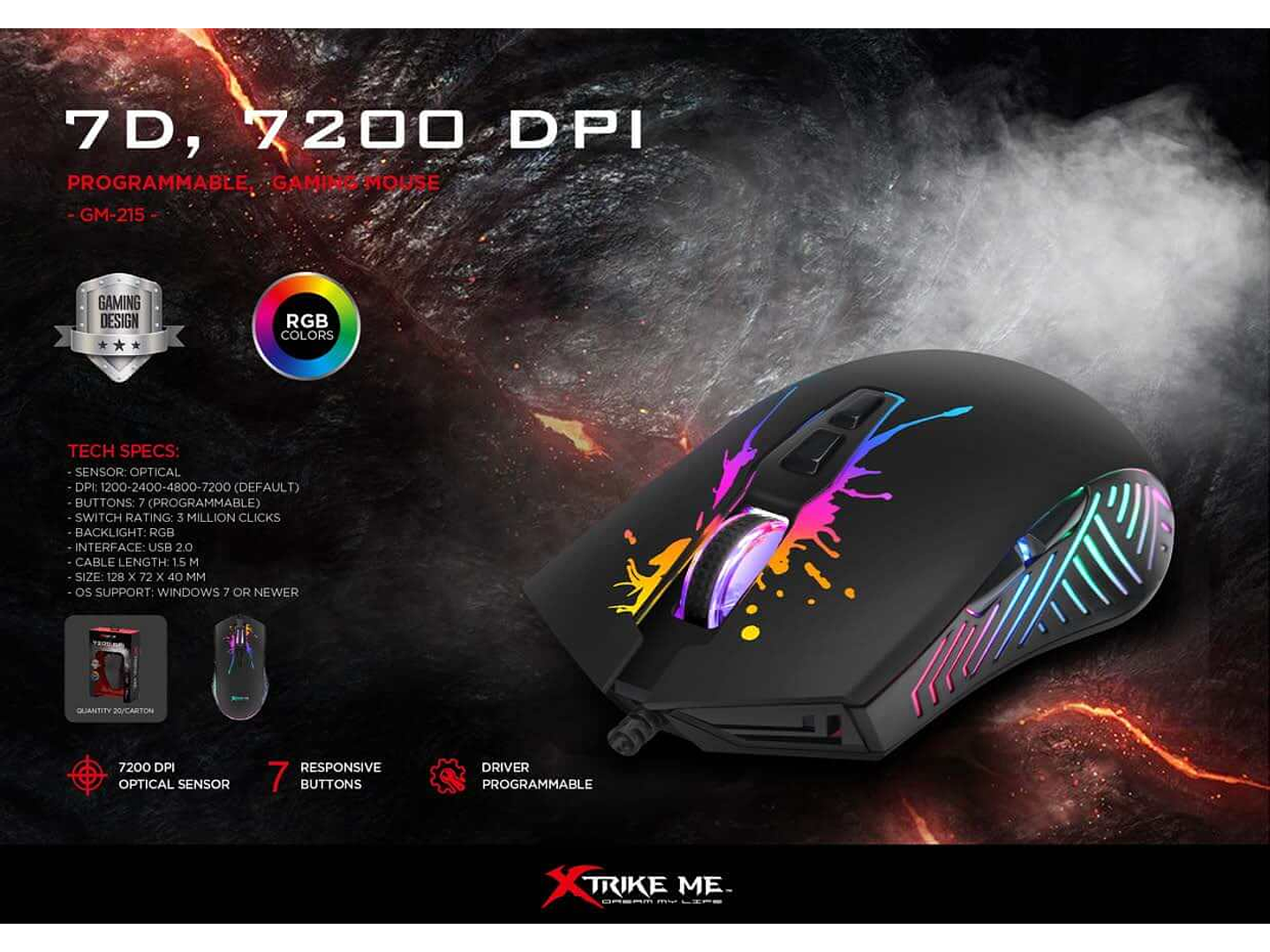 Mouse Gamer Xtrike Me Pro 7200dpi Gm-215