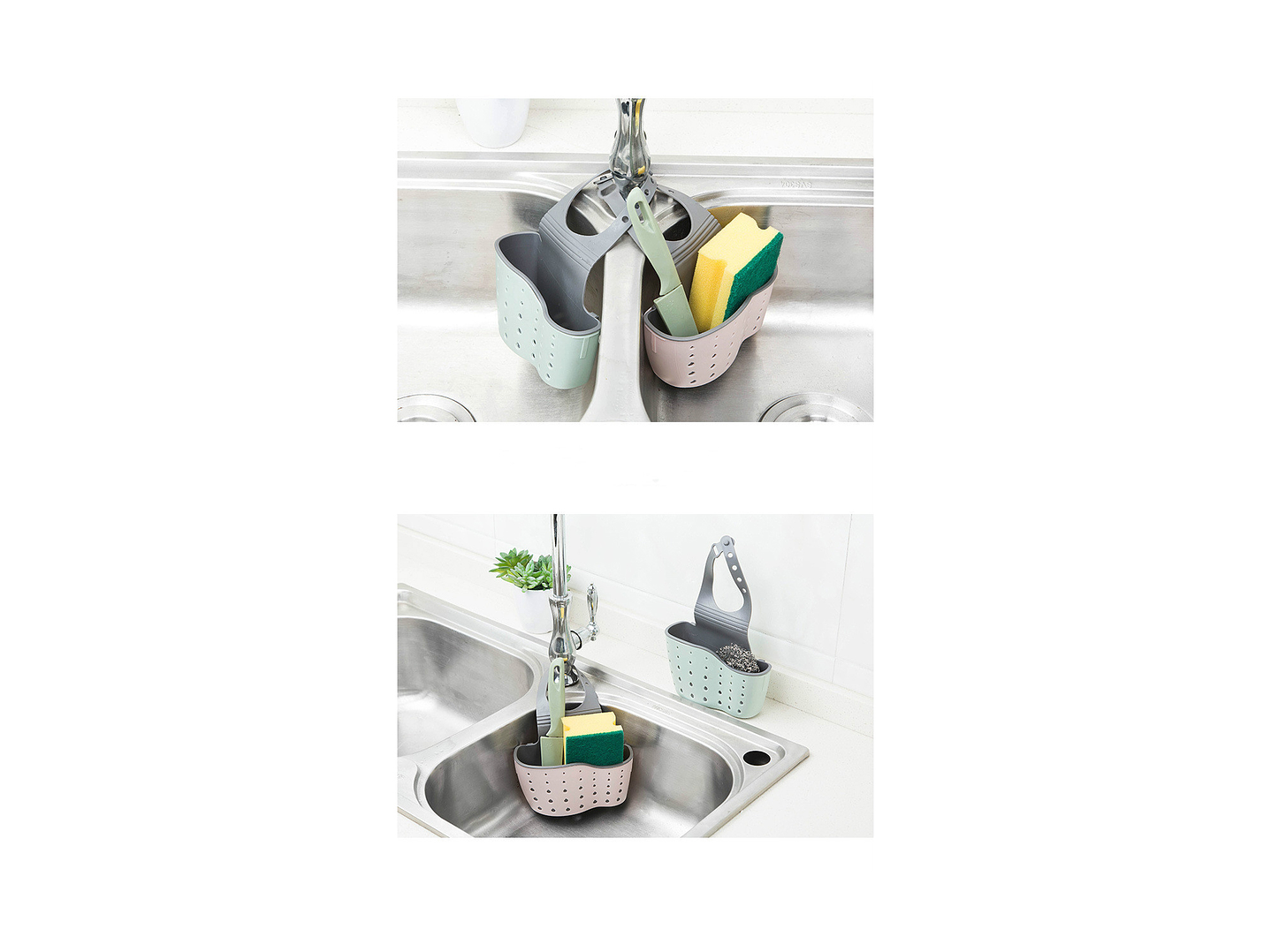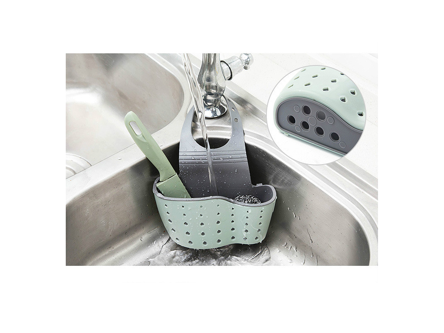 Este escurridor desmontable es perfecto para mantener tus esponjas y artículos pequeños siempre a la mano y en perfectas condiciones. Su diseño inteligente, con agujeros para el drenaje de líquidos, asegura que tus utensilios se mantengan secos y limpios.