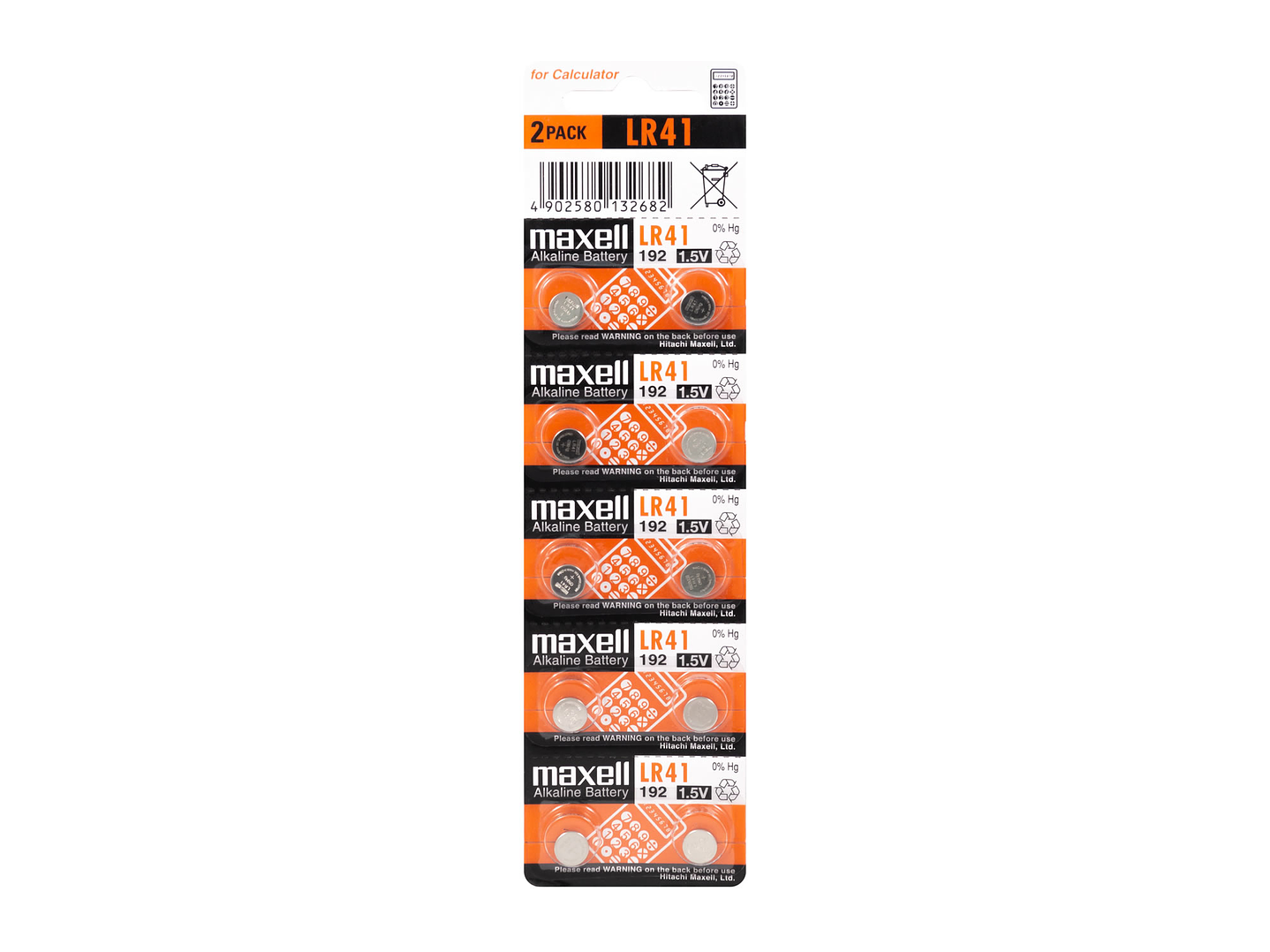 Esta es una pila de botón de tamaño LR41 de marca Maxell al por mayor, perfecta para relojes, calculadoras juguetes y otras aplicaciones portátiles. Tiene un voltaje nominal de 1,5V, aunque en la práctica parte cerca de 1,6V y lentamente va bajando hasta unos 1V a medida que es usada. La capacidad es de 110mAh, para otros niveles de consumo esta capacidad se puede ver reducida.