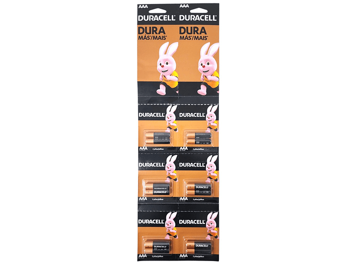 Pack 12 Pilas Duracell Aaa Triple A Alcalina al Por Mayor. Duracell proporciona una amplia gama de pilas concebidas para su uso en dispositivos electrónicos que requieran una alimentación eléctrica fiable. Perfectas para proporcionar una alimentación fiable a los dispositivos de uso cotidiano que requieran un toque de potencia adicional, estas pilas alcalinas multiuso duran más, mucho más* (*vs. pilas comunes de zinc-carbón. Los resultados pueden variar por dispositivo).