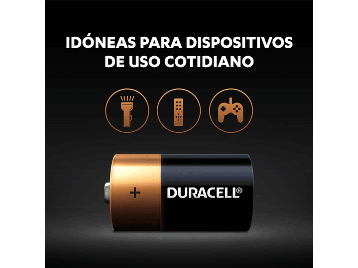 Pilas duracell tamaño C al Por Mayor. Duracell proporciona una amplia gama de pilas concebidas para su uso en dispositivos electrónicos que requieran una alimentación eléctrica fiable. Perfectas para proporcionar una alimentación fiable a los dispositivos de uso cotidiano que requieran un toque de potencia adicional, estas pilas alcalinas multiuso duran más, mucho más* (*vs. pilas comunes de zinc-carbón. Los resultados pueden variar por dispositivo) y están disponibles en tamaños AA, AAA, C, D y 9V.
