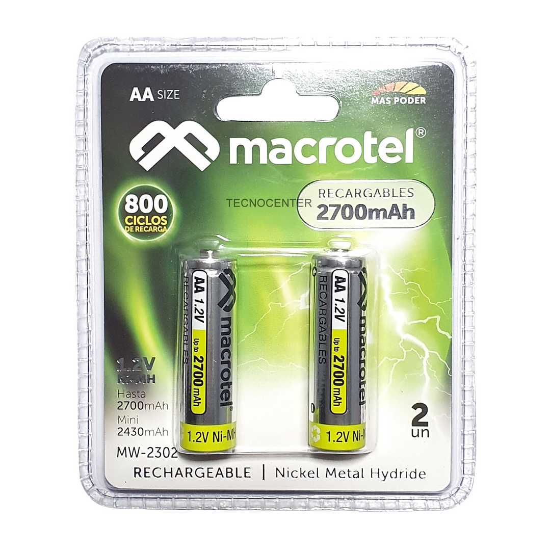 Pack 2 Pilas Recargables AA Macrotel 2700mha
