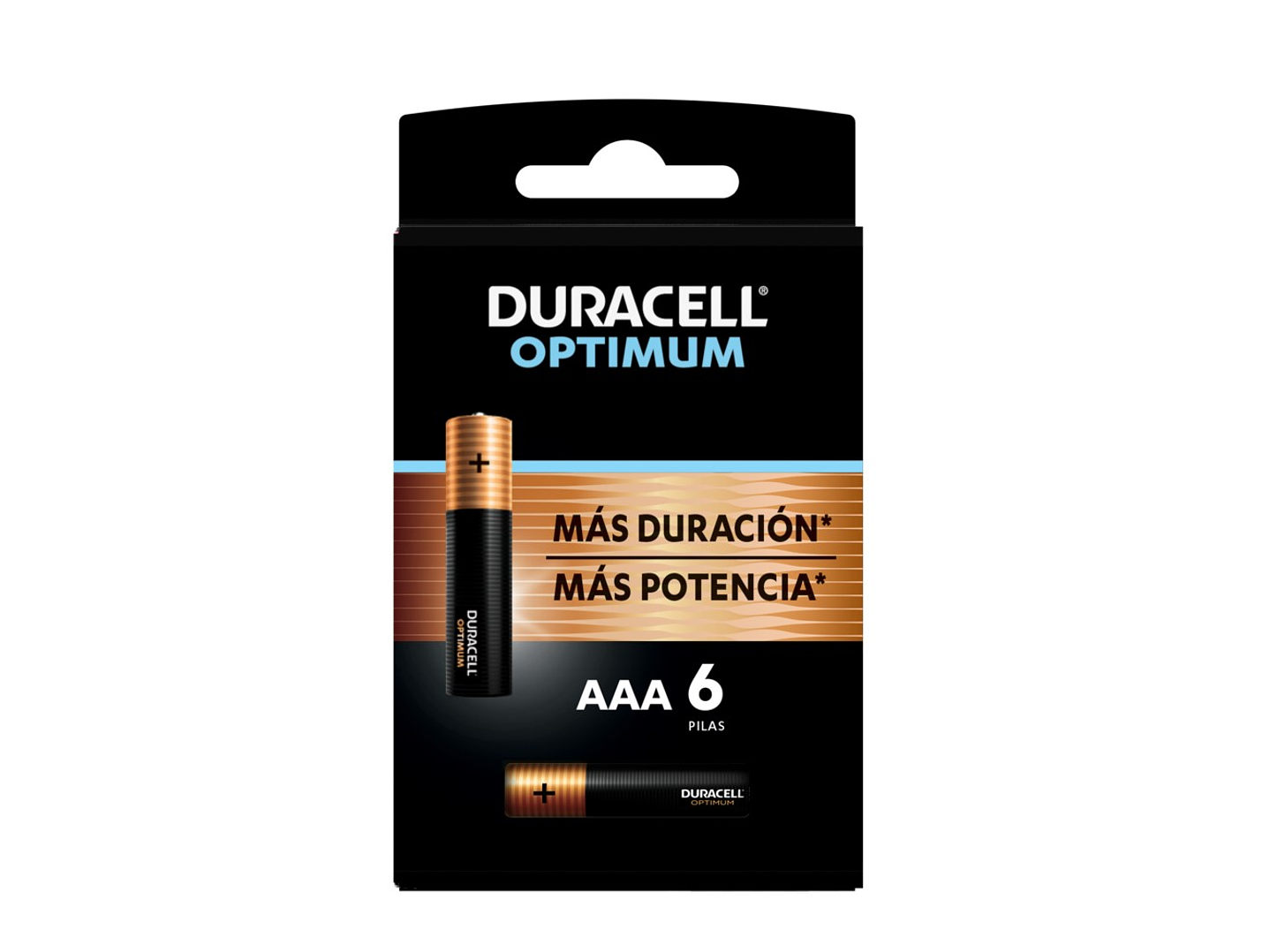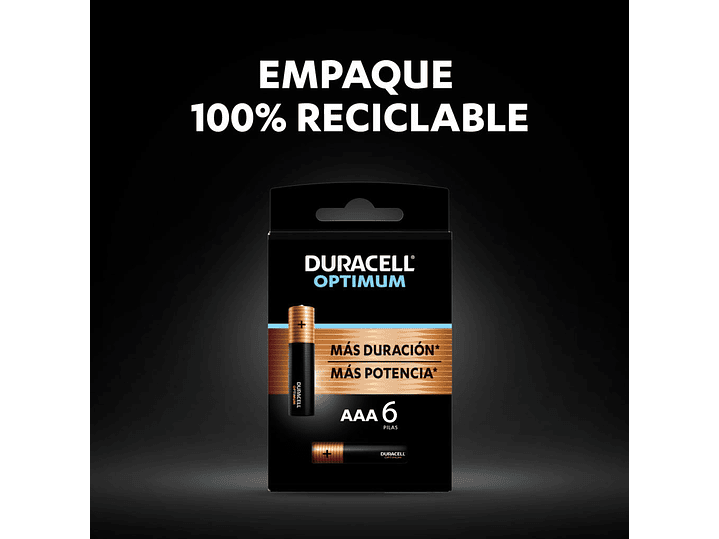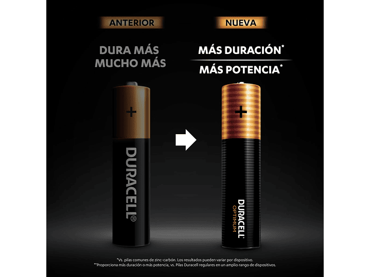 La innovación más revolucionaria de Duracell hasta el momento, la nueva pila alcalina Duracell AAA Optimum tiene un nuevo sistema de cátodo que puede proporcionar hasta un 200% de duración extra en algunos dispositivos, o de potencia extra en otros.