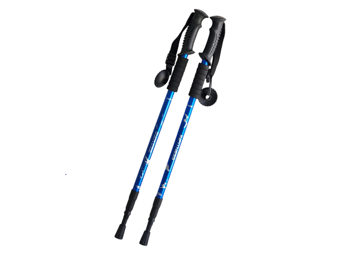 Set 2 Bastones Ajustables para Trekking al Por Mayor, color azul, Diseñado para ofrecerte estabilidad y comodidad en cada aventura, este bastón es el compañero perfecto para tus caminatas por senderos, montañas y bosques. Con un tamaño ajustable de 64 a 135 cm, brinda versatilidad para adaptarse a diferentes alturas y terrenos, permitiéndote enfrentar cualquier desafío sin esfuerzo.