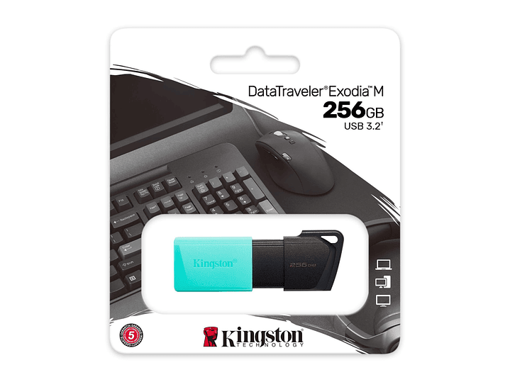 DataTraveler® Exodia™ M de Kingston es una solución de almacenamiento compatible con USB 3.2 Gen 1 para computadoras portátiles, computadoras de escritorio, monitores y otros dispositivos digitales DT Exodia M permite transferencias rápidas y almacenamiento conveniente de documentos, música, videos y más. Está disponible en múltiples opciones de colores elegantes que corresponden a grandes capacidades. Su practico diseño lo convierte en una solución de almacenamiento ideal para llevar, ya sea en el trabajo, el hogar o la escuela. El DT Exodia M está respaldado por cinco años de garantía, soporte técnico gratuito y la legendaria confiabilidad de Kingston®.