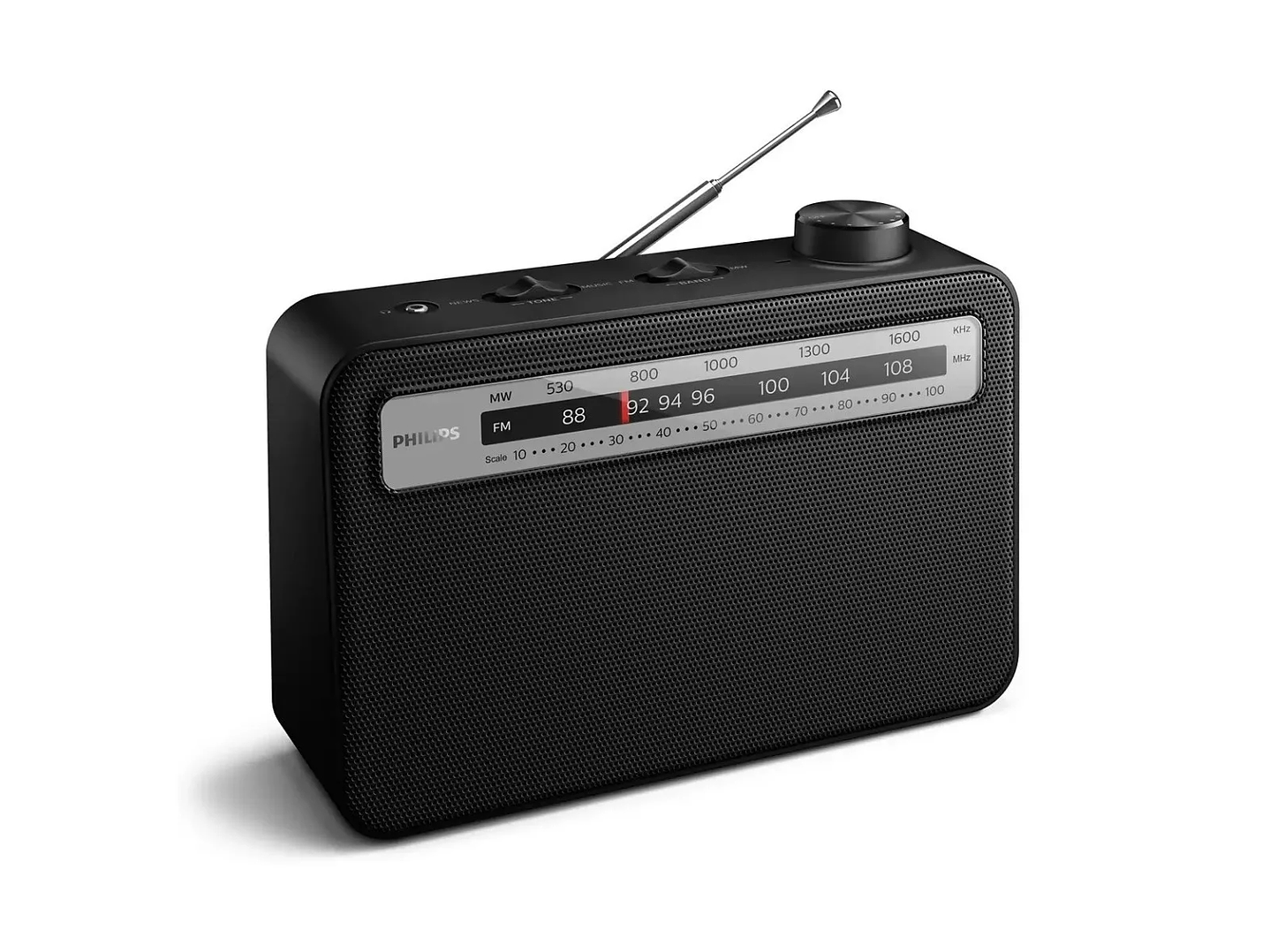 Una amplia ventana de sintonización de estilo tradicional facilita la visualización cuando se alcanza la frecuencia deseada. Solo tienes que girar la rueda de sintonización lateral para deslizar el indicador a lo largo de la escala.