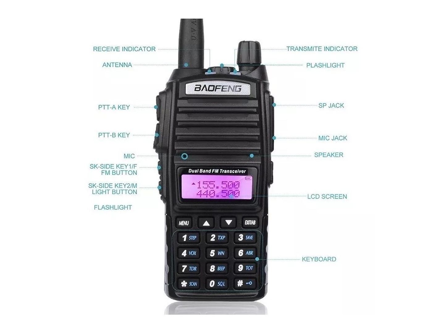 Transceptor portátil Dual Banda con visualización del menú de funciones en el display LCD