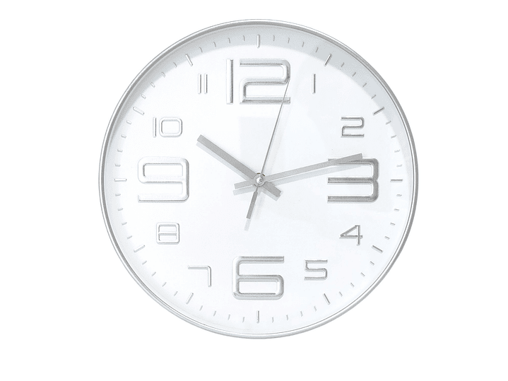 Borde y Manecillas Plateadas: El elegante acabado plateado, tanto en el borde como en las manecillas y números, aporta un aire contemporáneo y chic.