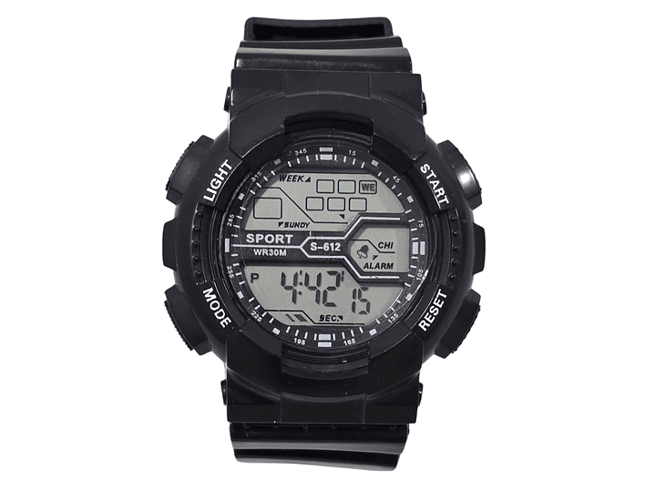 El Reloj Deportivo Digital Negro Basic es la opción perfecta para quienes necesitan un reloj sencillo de bajo costo, funcional y resistente para el día a día. ¡Mantén el ritmo de tu vida con estilo y precisión!